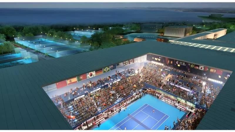 主要建設中心賽場,室內網球練習館(含常規場地、網球中心配套用房、VIP室內場地及其配套服務用房、學員公寓)單跨跨度約42米,室內網球練習館(紅土場地),籃球館,教員公寓,室外網球比賽場,室外網球練習場及地下停車場。