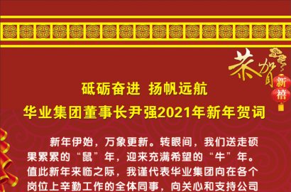 新年伊始,萬象更新。轉眼間,我們送走碩果累累的“鼠”年,迎來充滿希望的“牛”年。值此新年來臨之際,我謹代表華業集團向在各個崗位上辛勤工作的全體同事,向關心和支持公司發展的各級領導、廣大客戶、員工家屬及各界朋友,致以誠摯的問候和衷心的感謝!祝大家在新的一年里,工作順利、身體健康、闔家幸福、萬事如意!?
